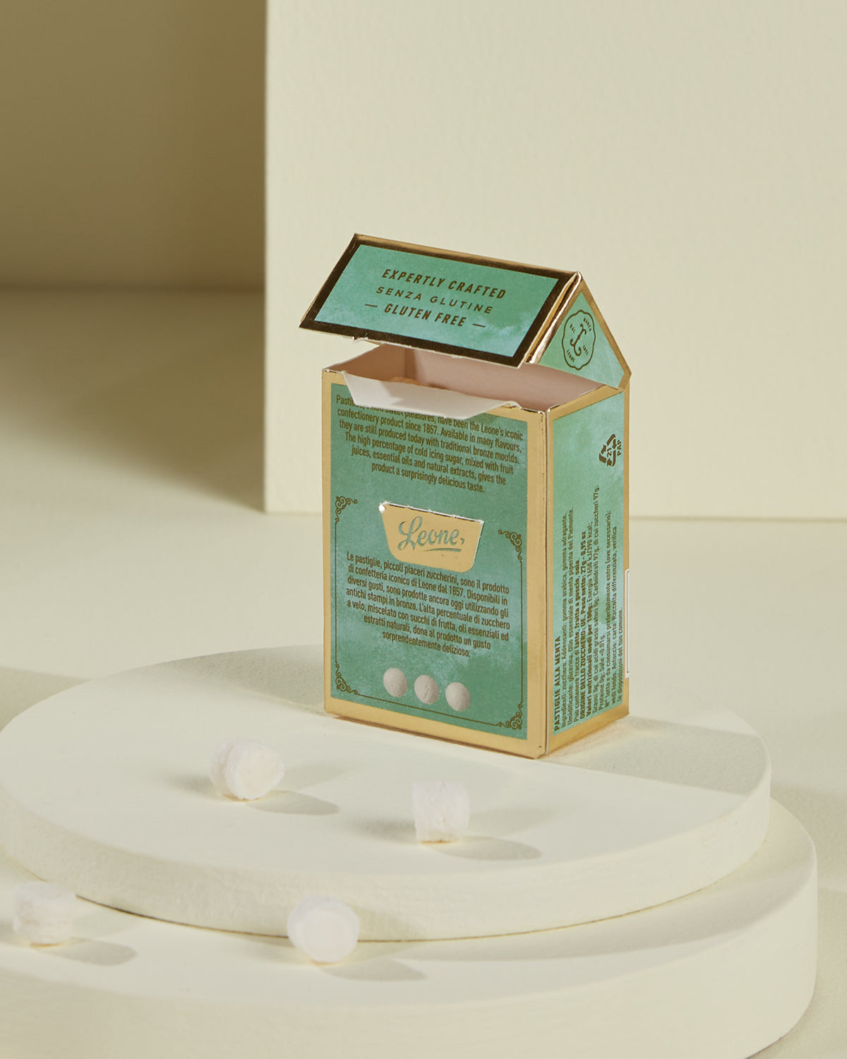 Un petit coffret à emporter toujours avec soi, rempli de petits trésors sucrés au goût de menthe. Ils fondent délicatement dans la bouche, libérant une saveur unique et authentique, grâce aux ingrédients de haute qualité et à la tradition artisanale italienne.