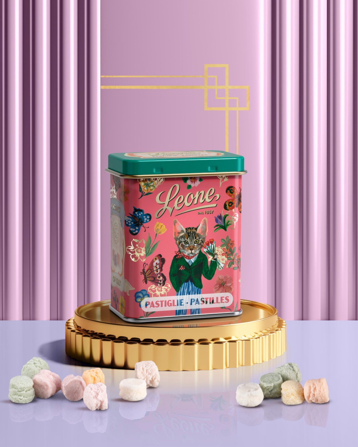 L'univers léger et coloré de Nathalie Lété rencontre la douceur des pastilles Leone dans une canette enchanteresse en édition limitée. Nos pastilles sont de petits trésors sucrés. Elles fondent délicatement dans la bouche, libérant une saveur unique et authentique, grâce à des ingrédients de haute qualité et à la tradition artisanale italienne.