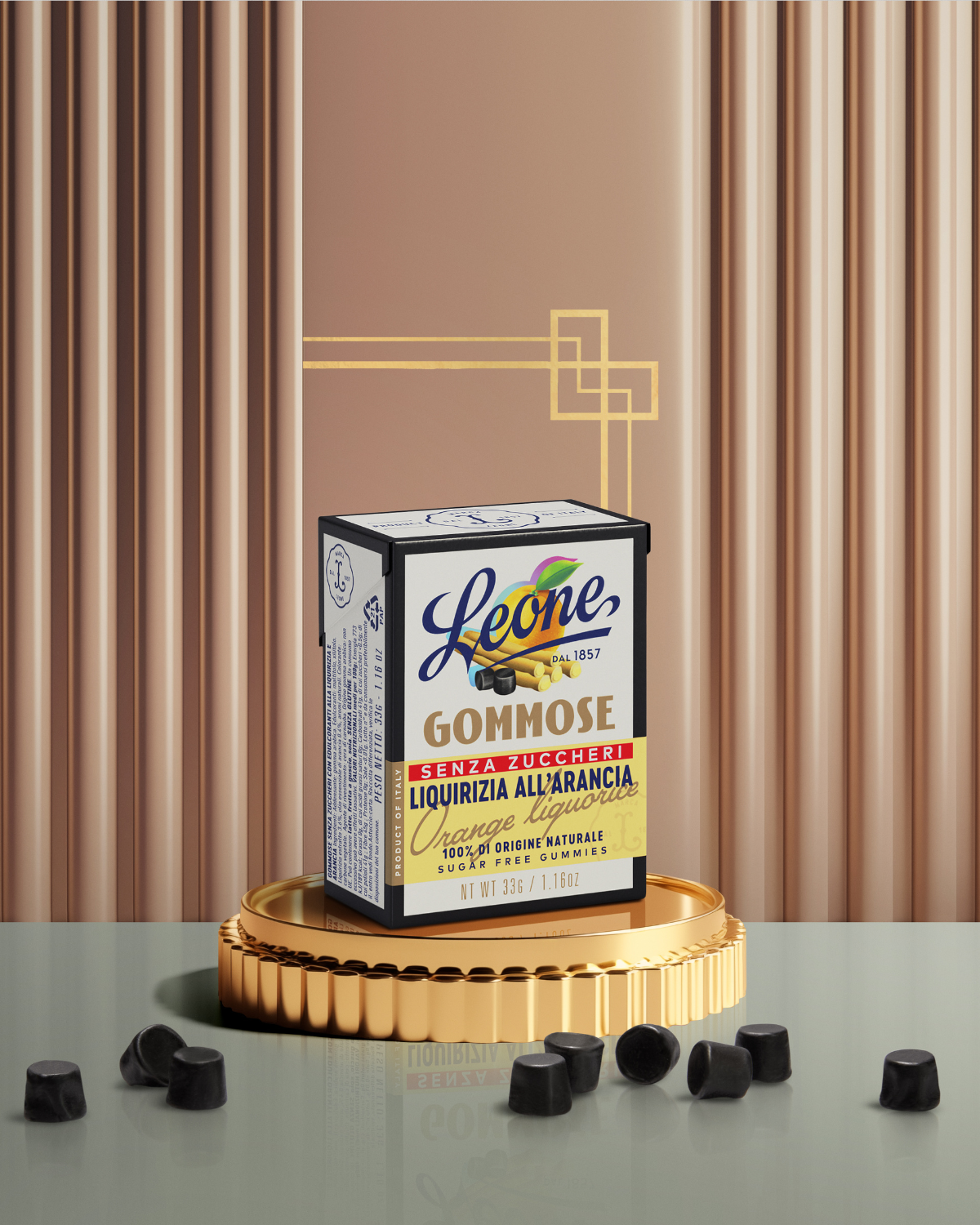 De petits moments de bonheur, au délicieux goût de réglisse à l'orange. Zéro sucre, 100% Leone.
