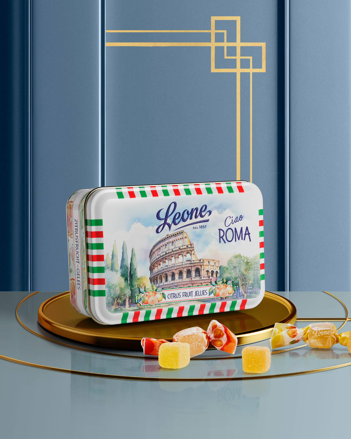 Gelée agli agrumi dal gusto vivace, custodite in una latta-cartolina che celebra il Colosseo e il fascino intramontabile di Roma. Un connubio di tradizione e vitalità che non smette mai di stupire, proprio come la città eterna.