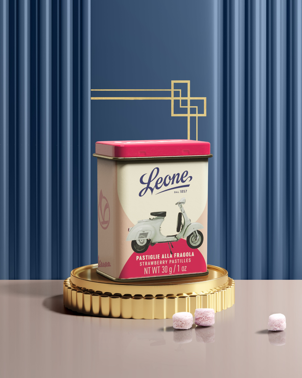 Vespa 50 (V561T) 1963 e pastiglie alla fragola: un’accoppiata spensierata dal fascino senza tempo. Un’icona di libertà su due ruote incontra la dolcezza profumata della fragola. Preparati a un viaggio indimenticabile, tutto da gustare.