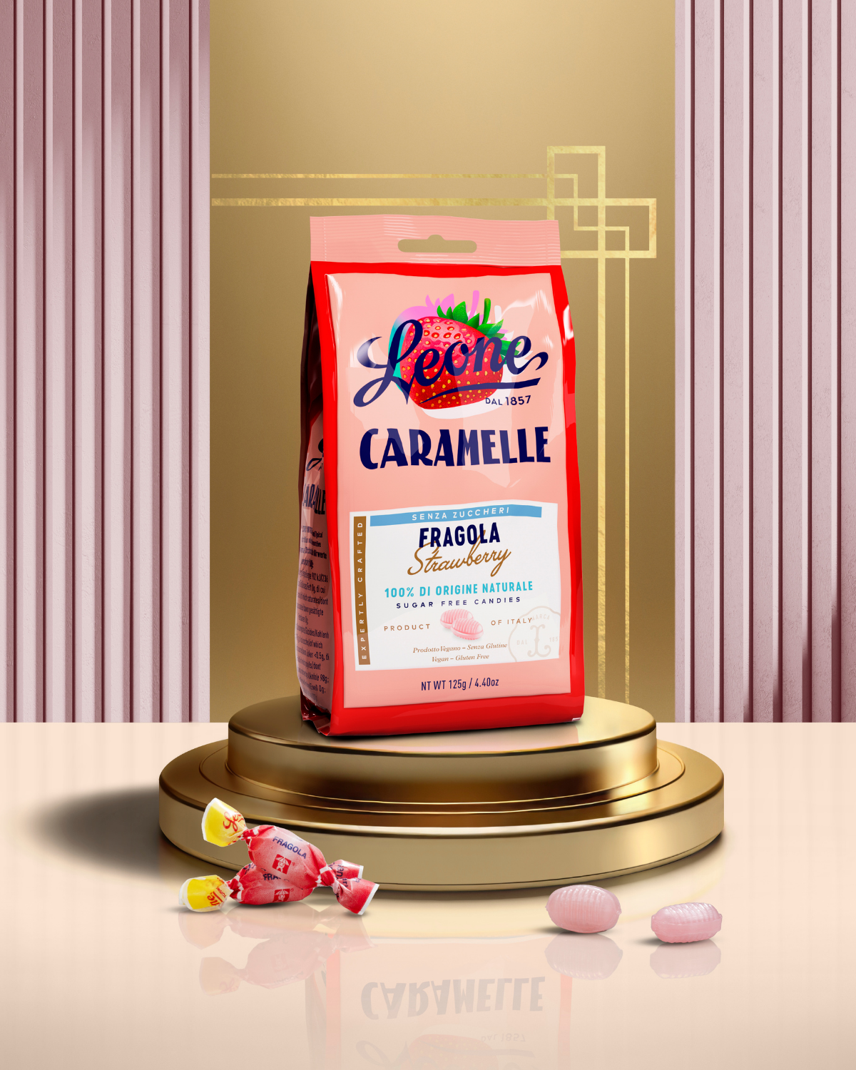 Superbe delizie al gusto fragola. Zero zuccheri, 100% Leone.