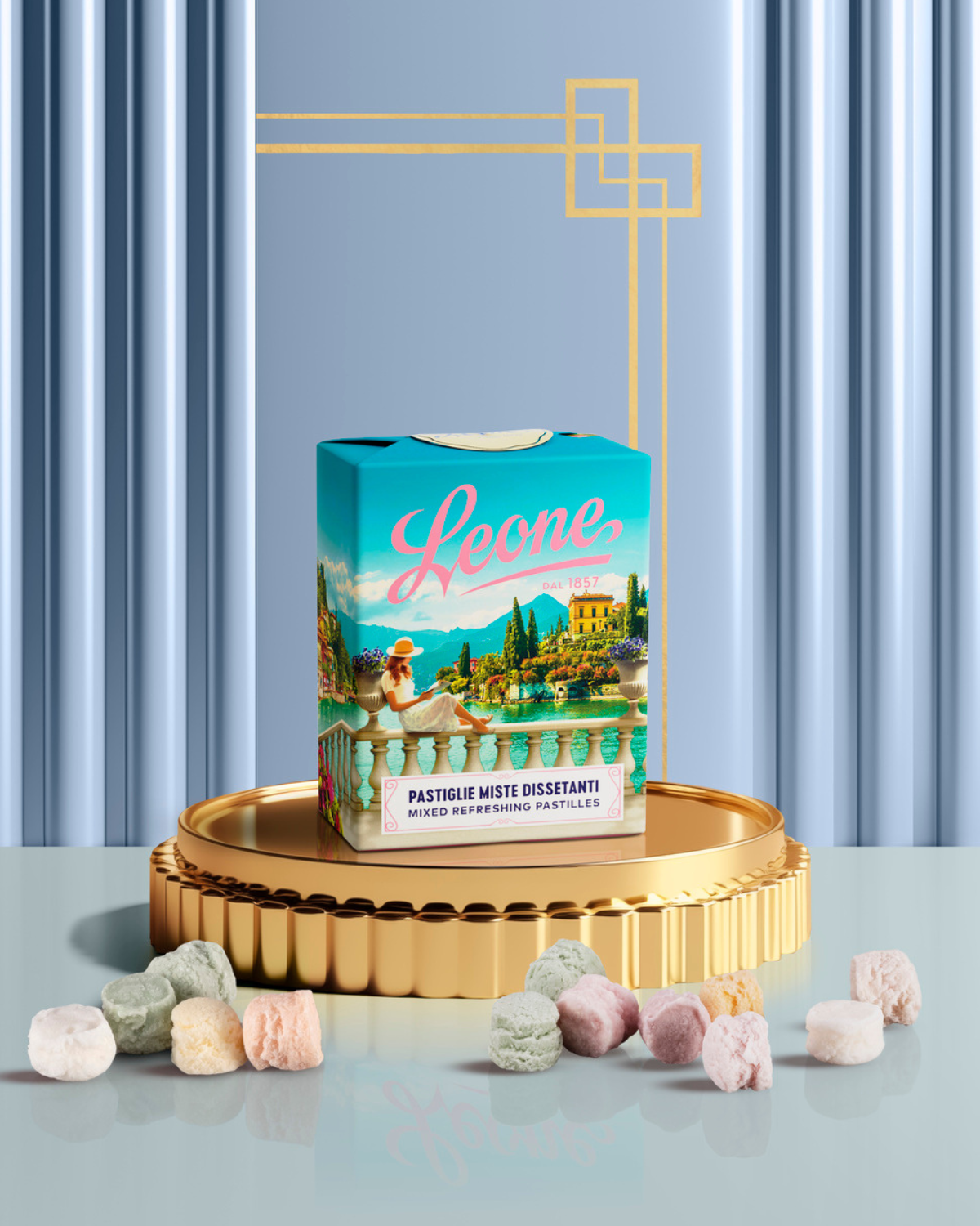L’inconfondibile freschezza delle pastiglie miste dissetanti Leone in una nuova veste grafica omaggio all’italianità. Un viaggio attraverso i paesaggi più iconici del Bel Paese per vivere la dolce vita italiana.