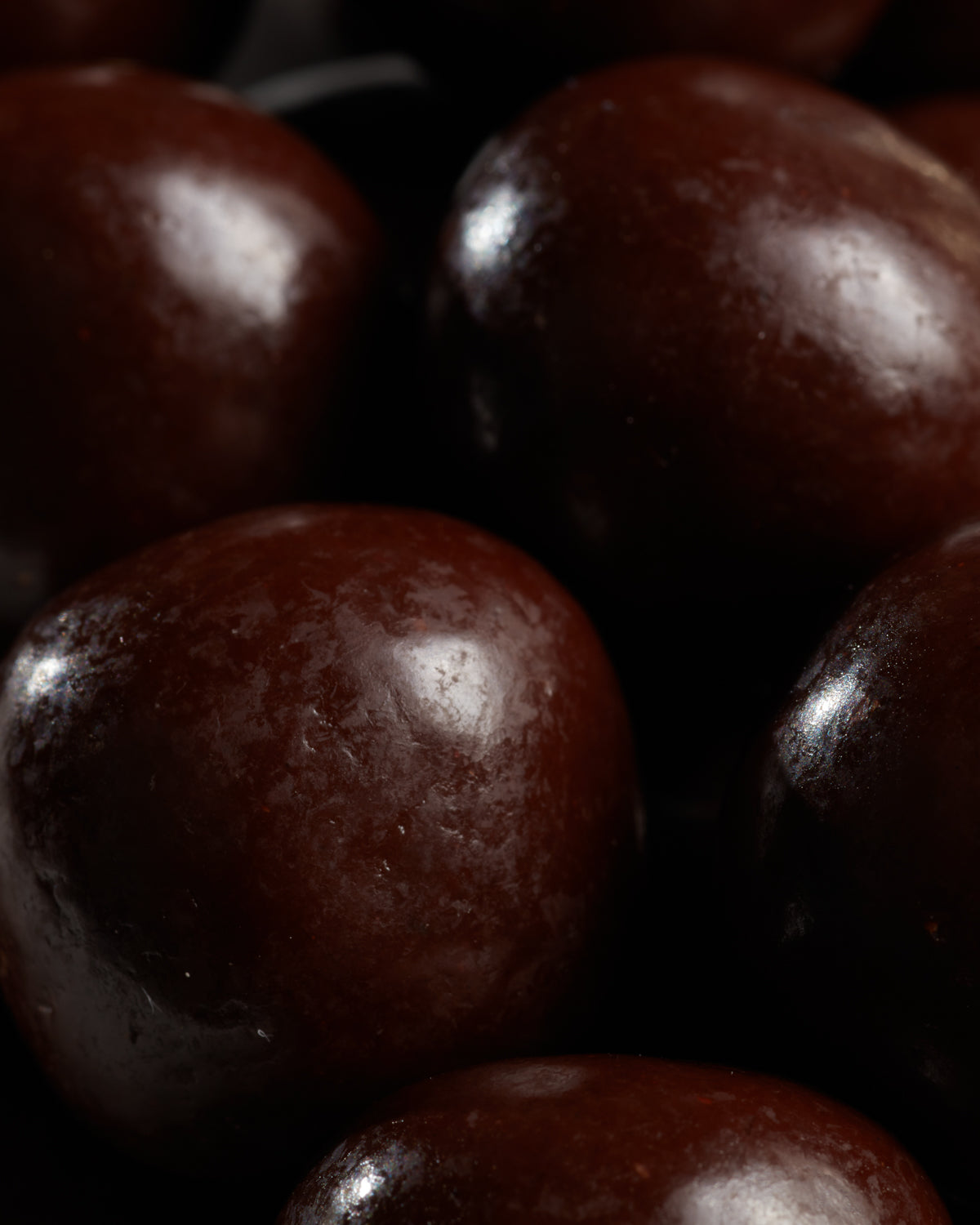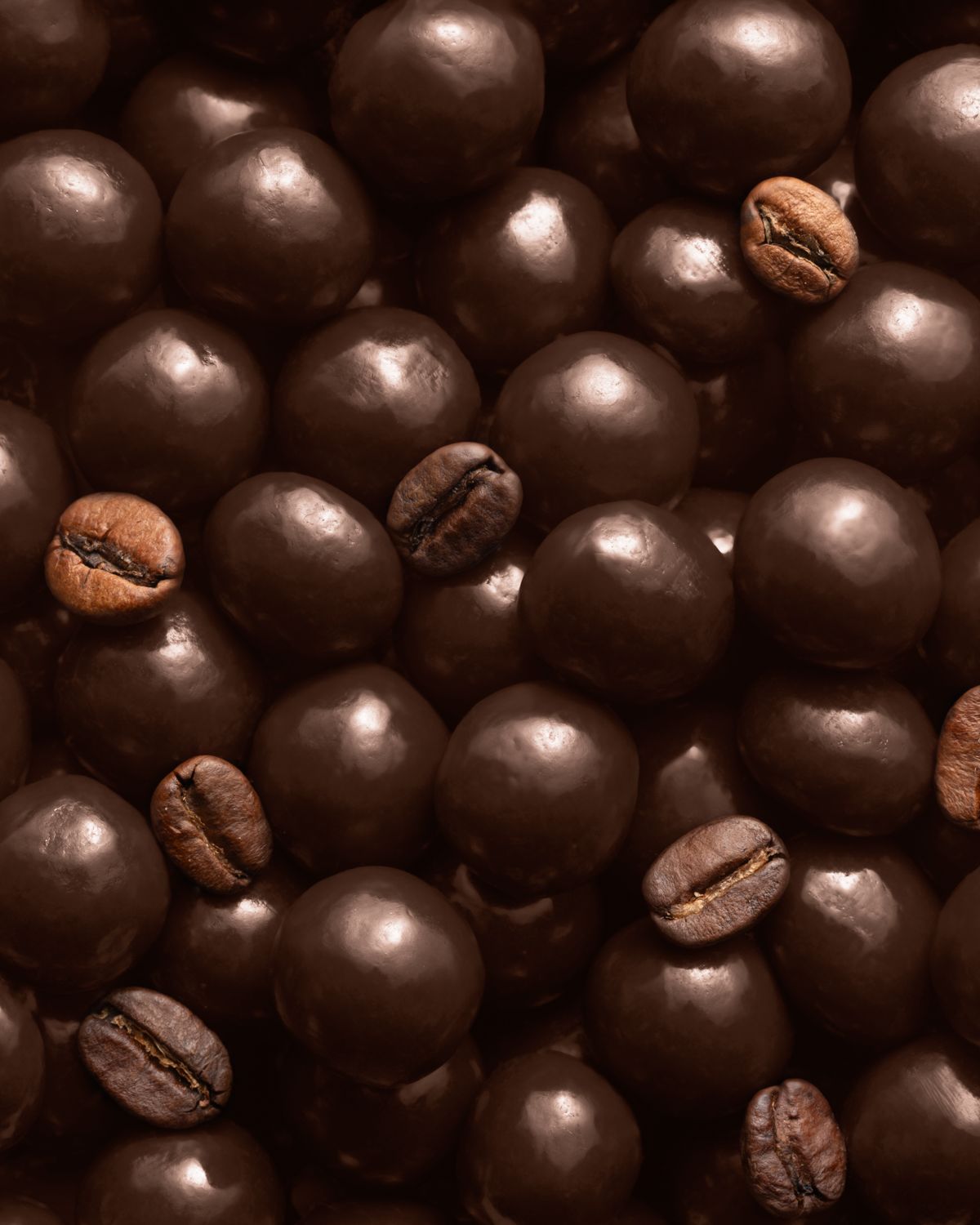Eine elegante Dose zur Erhaltung des unverwechselbaren Aromas von 100 % Arabica-Kaffeebohnen, umhüllt von einer Schicht dunkler Schokolade.